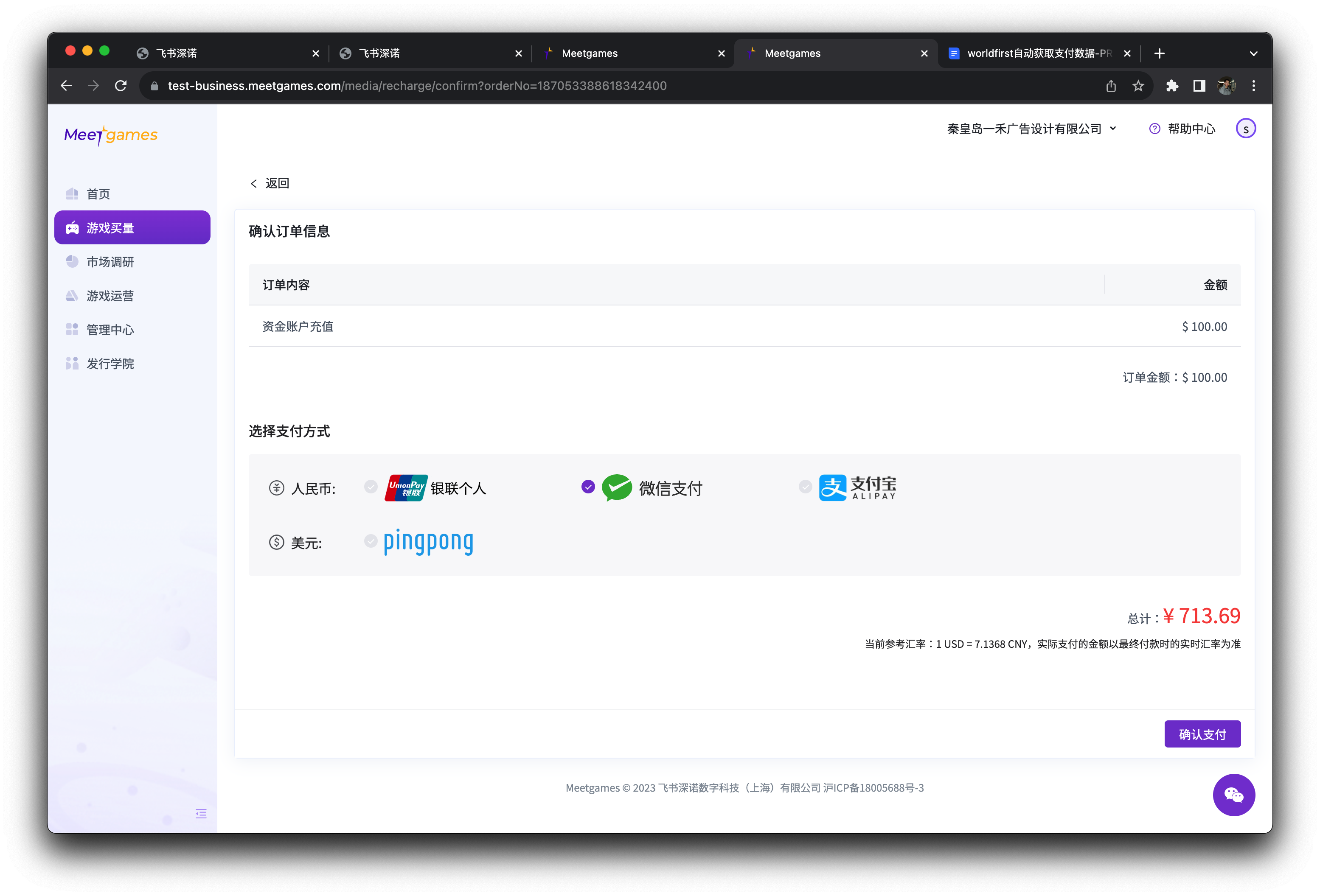 Meetgames 媒体账户充值指南