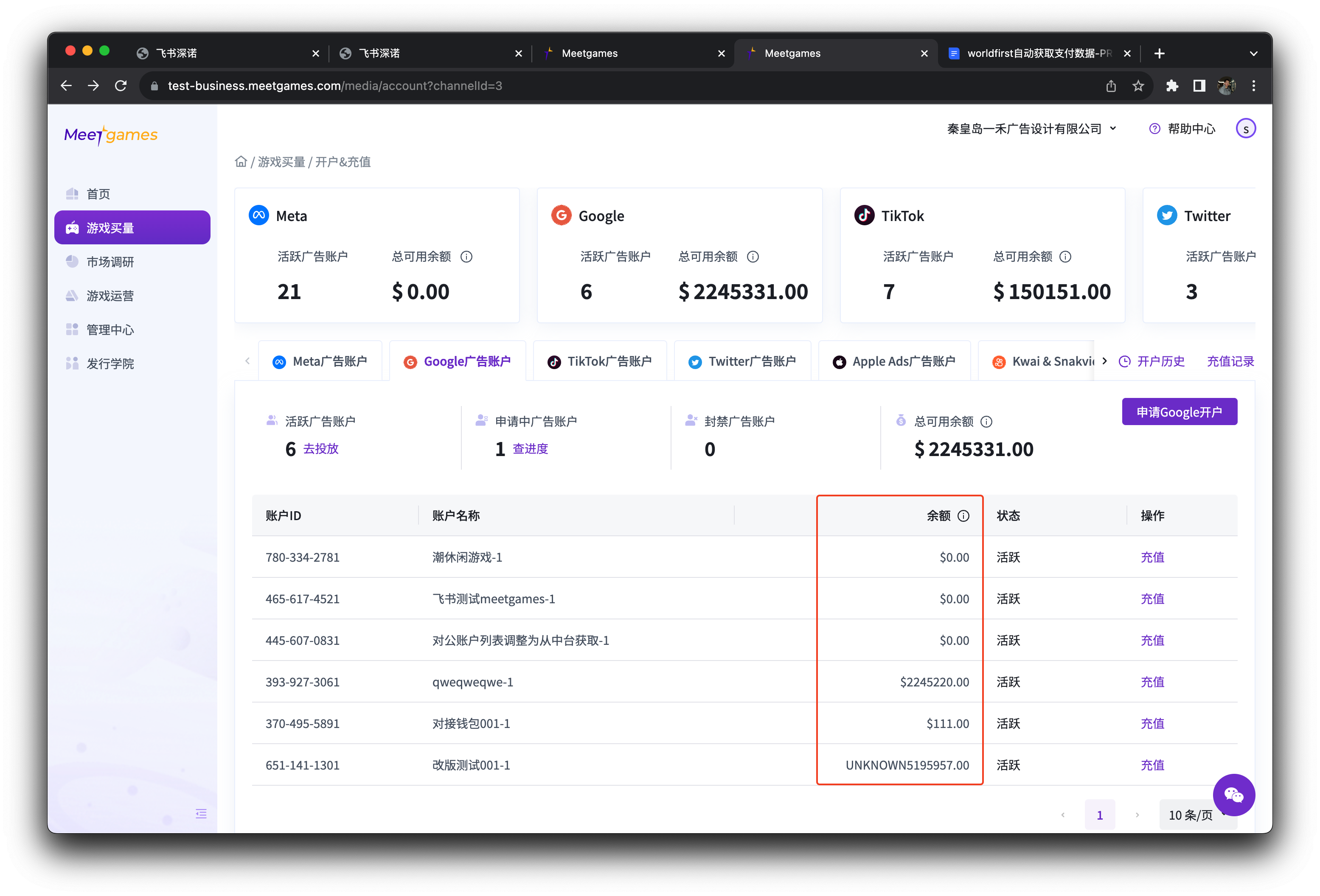 进入开户&充值页面(图1),在账户列表中,可以查看媒体账户的余额。