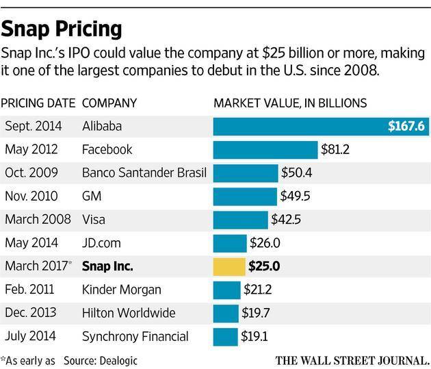 按照250亿美元的估值上市,Snap将会是2014年以来美国证交所规模最大的IPO