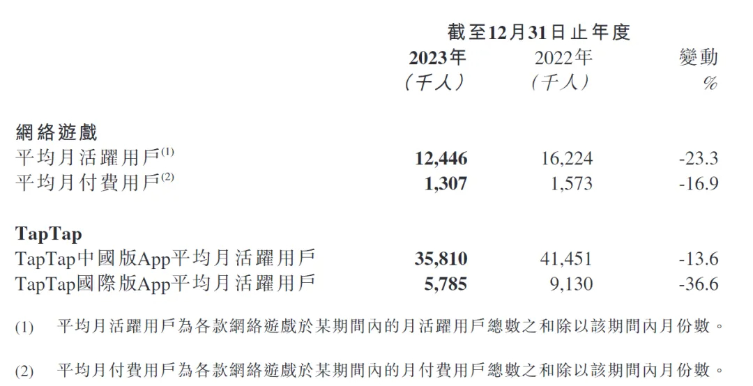 游戏产品之外,心动公司还公布了游戏以及TapTap的运营数据,财报显示,截至2023年12月31日,心动公司网络游戏平均月活跃用户1244.6万人,平均月付费用户130.7万人;中国版TapTap平均月活用户3581万人,同比减少13.6%,国际版TapTap月活578.5万人,同比减少36.6%。