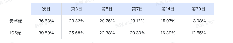 从海外数据可以看出,从次日直到月留存率没有出现明显的下跌断档,展现了相当好的用户粘性