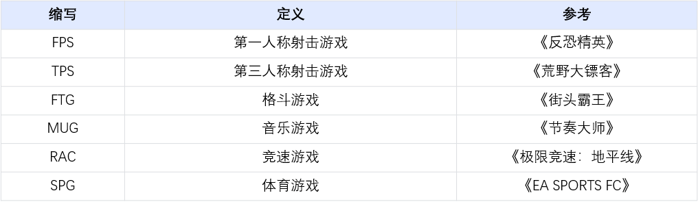 市场上的游戏玩法各式各样,有单机有联网,有射击有种地。游戏分类方法也是五花八门,这里我们根据核心玩法和体验来将游戏分为七大类,再来看看这七大类下分别都有哪些游戏及其术语: