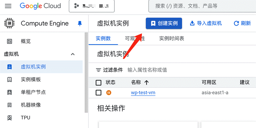 1. 在 "虚拟机实例" 页面,点击顶部的 创建实例 (CREATE INSTANCE) 按钮。