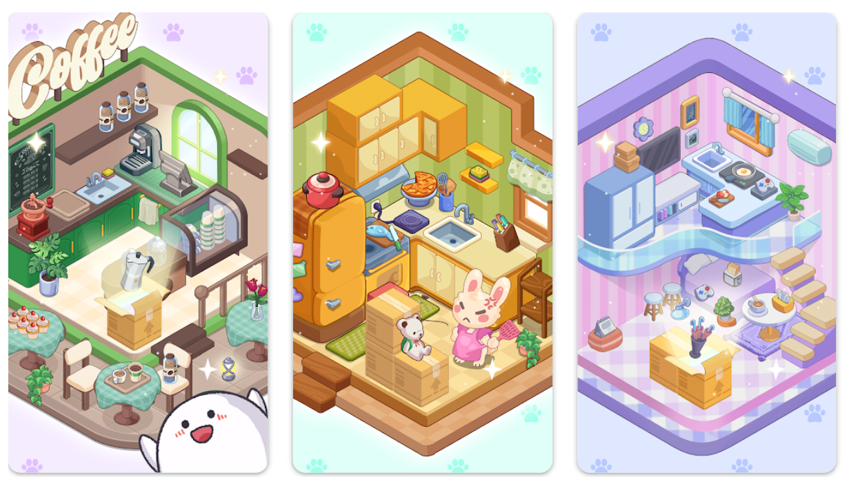 这类休闲模拟游戏以“低门槛、高治愈”为核心,通过生活场景还原与情感共鸣设计,成功打入欧美、日韩等成熟市场。例如,以房间整理为核心玩法的《Dreamy Room》,上线一年内海外收入突破1000万美元。