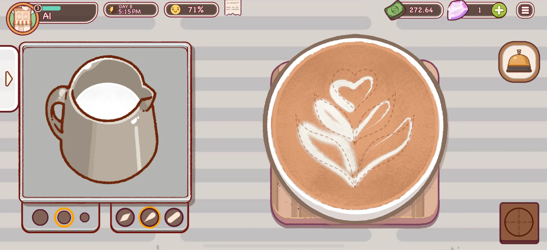 技术赋能体验:3D建模与物理引擎的普及,使物品交互更真实。如《Good Coffee, Great Coffee》通过动态咖啡拉花模拟,增强操作沉浸感。