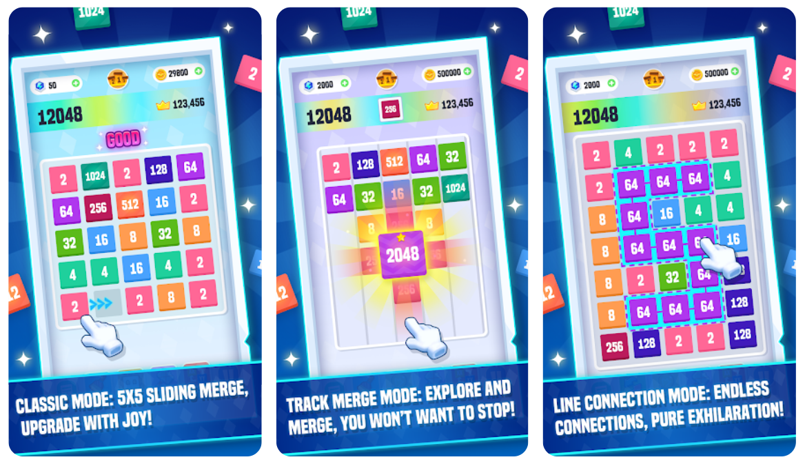 2048玩法变种:原版2048于2014年在中国及欧美广获好评,后续出现了众多分支,例如“2048 Fun Collection”、“2048 Merge X”等,表明玩家对“脑力+轻度操作”结合的消除玩法持续青睐。