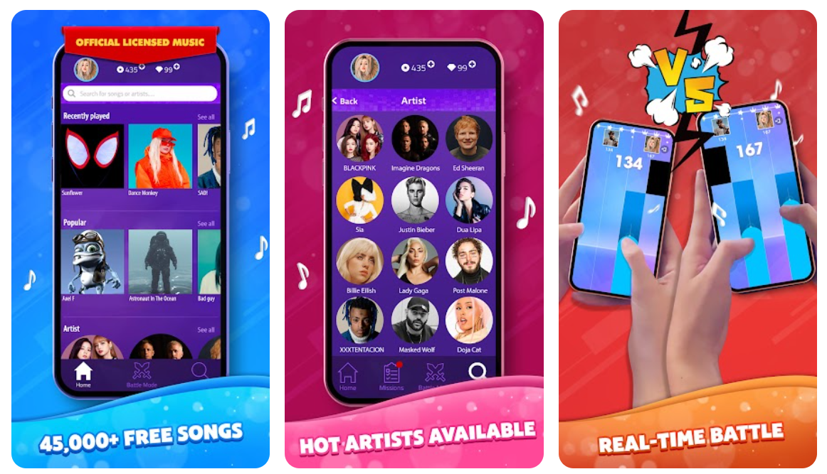 《Music Piano 7: Rush Song Games》别踩白块玩法:2025年上半年,《Music Piano 7: Rush Song Games》位列Google Play印尼音乐类游戏榜单第二名,累计下载量已突破千万,并在近30天内新增了数百万下载。该游戏直接承袭了“别踩白块儿”经典小游戏玩法并进行了界面美化、曲目扩充、本地化推广等再包装,成功击中当地用户对“简单、易上手但又具挑战性”玩法的需求。