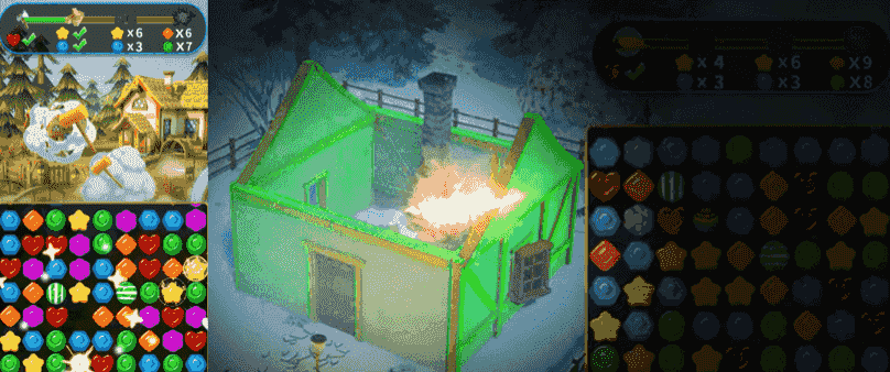 以果冻回弹效果,传递“点击/尝试”信息。尤其对于三消游戏老用户而言,能有效造成紧迫感。