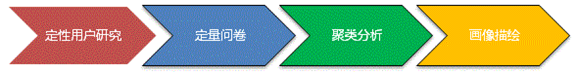 同时也可以结合市场调研、用户 CE (用户体验)来综合分析。市场调研同时也适用于用户画像分析,先定性后定量的方法收集用户属性,聚类得到用户特点,然后按玩家的类型挖掘用户的潜在需求。用户画像的一般流程和方法如下图所示: