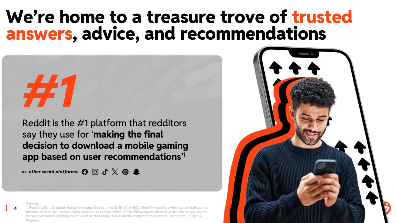 Reddit 的手游社区平均每天发布超过 146,000 条帖子和评论,帖文浏览量达到 7,500万次 —— 移动游戏始终是 Reddit 上备受关注的热门话题。