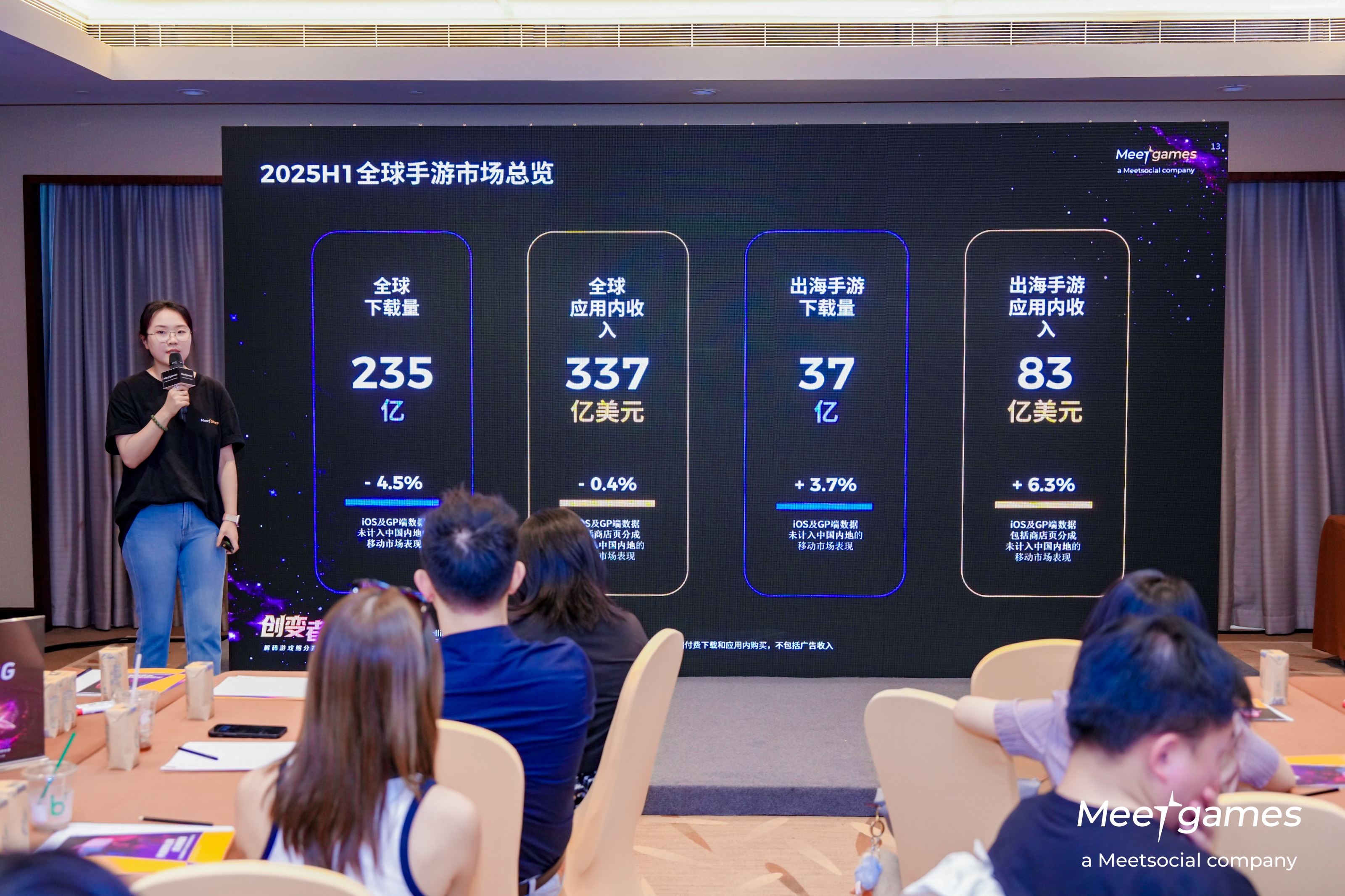 随后,飞书深诺集团 Meet Intelligence 负责人黄敏带来《2025 H1 全球手游市场洞察报告》解析,深入剖析了北美、西欧、日本、拉美、东南亚及中东等关键市场的现状和未来机遇。