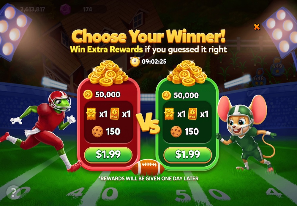 主题联动玩法:结合实时大事件或IP,如《Grand Solitaire Harvest》推出“Choose Your Winner!”超级碗专题,玩家选定胜者队伍即可获额外奖励,提升娱乐性和社交传播度。