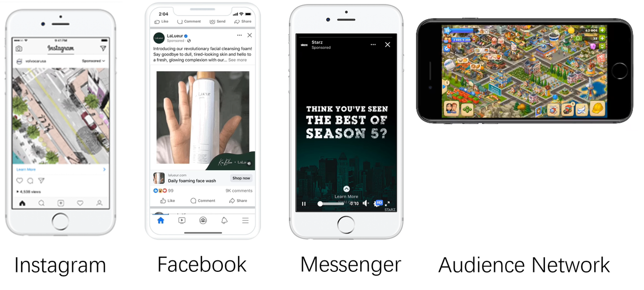 展示平台:Facebook动态、Instagram、Audience Network、Messenger
