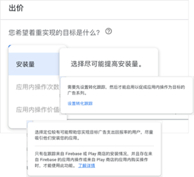 通用广告(UAC):机器学习自动优化,支持三大目标:最大安装量、应用内事件(如注册)、用户终身价值(LTV)。